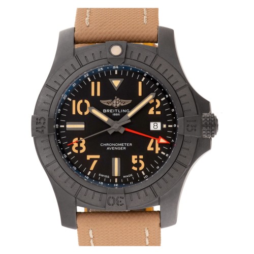 Relógio Breitling Avenger GMT em titânio com revestimento DLC preto e pulseira de couro bege. Automático com segundos contínuos e data. Caixa de 44 mm. Relógio Breitling Avenger V32395 com pulseira de couro bege e fivela de pino em titânio preto. Este relógio Breitling possui uma caixa de 44 x 44 mm com fundo redondo e mostrador preto com numerais arábicos. Acompanha Certificado de Autenticidade da Gray and Sons e garantia de 12 meses. Cada relógio é inspecionado por nossos relojoeiros internos certificados e treinados na Suíça antes do envio, incluindo revisão final, limpeza e polimento. O relógio réplica Breitling Avenger fabricado em nossa loja online é equipado com um movimento automático altamente clonado da Ásia. Relógio Breitling Avenger V32395 em Titânio Preto com Mostrador Preto e Caixa de 44 mm, Automático.