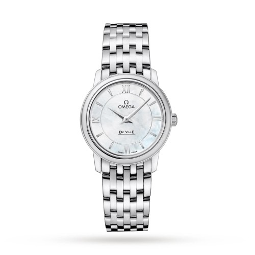 A coleção OMEGA De Ville Prestige conquistou um grande número de seguidores fiéis com seu design clássico e elegante. Esses relógios se caracterizam por um estilo puro com acabamentos luxuosos e exalam um design atemporal. Este modelo apresenta um mostrador de madrepérola branca de duas zonas com marcadores de horas em algarismos romanos nas posições 3, 6, 9 e 12 horas. Um cristal de safira resistente a riscos protege este mostrador impressionante. O bisel é montado em uma caixa de aço inoxidável de 27,4 mm e acompanha uma pulseira também de aço inoxidável. Este relógio de pulso é movido pelo Calibre 1376 da OMEGA, um movimento de quartzo de precisão.