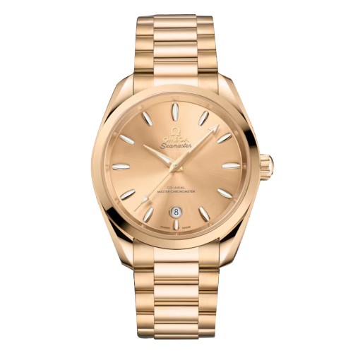 Este modelo de 38 mm é fabricado em aço polido Moonshine® de 18 quilates. Possui coroa e fundo da caixa cônicos com bordas onduladas e cristal de safira plano. O mostrador com acabamento escovado é laqueado em ouro Moonshine® com tratamento PVD e apresenta uma janela de data circular às 6 horas, circundada por ouro Moonshine® de 18 quilates. A OMEGA também utilizou ouro Moonshine® de 18 quilates para os ponteiros facetados e os marcadores de horas distintos, que têm o formato de cascos de veleiros e são preenchidos com Super-LumiNova branca. A caixa é feita com uma pulseira de ouro Moonshine® de 18 quilates e o relógio é movido pelo calibre 8801 Co-Axial Master Chronometer da OMEGA, certificado segundo o mais alto padrão da indústria pelo Instituto Federal Suíço de Metrologia (METAS).