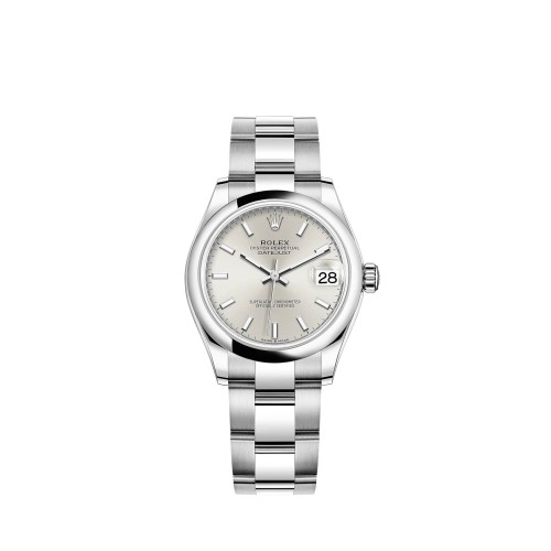 Rolex Datejust 31 em aço Oystersteel com mostrador prateado e pulseira Oyster.