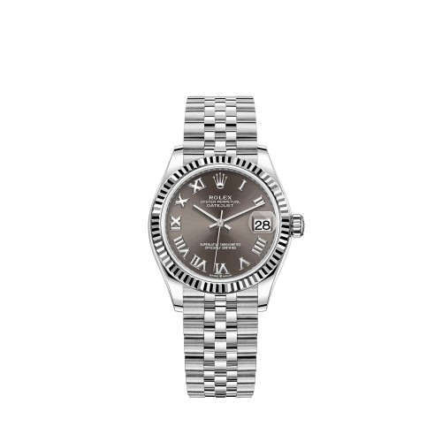 Réplica de Alta Qualidade do Rolex Datejust 31 em Rolesor Branco, Mostrador Cinza Escuro, Pulseira Jubilee