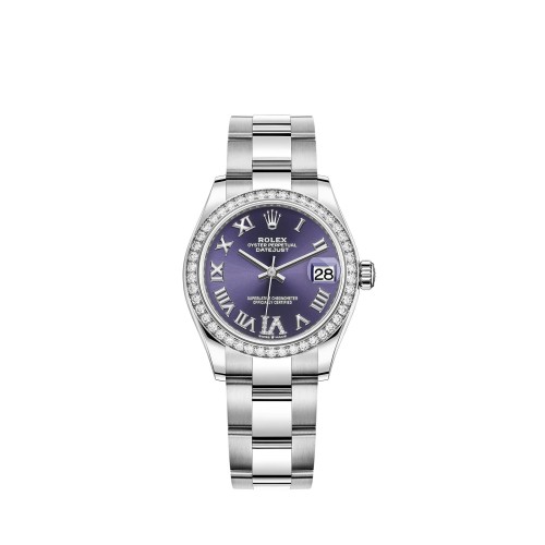Rolex Datejust 31 com mostrador beringela em Rolesor branco cravejado de diamantes