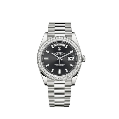 Etiquetas: Réplica do Rolex Day-Date 40 em ouro branco 18 quilates com mostrador cravejado de diamantes negros. Relógio, Réplica Relógio ROLEX DAY DATE m228349rbr-0003