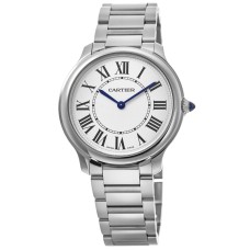 Relógio Cartier Ronde Solo Unissex em aço inoxidável 36 mm com mostrador opalino prateado, cristal d..