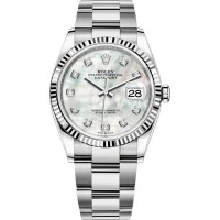 Réplica Rolex Datejust 36 em aço e amp; Relógio feminino em ouro branco madrepérola com mostrador diamante M126234-0020